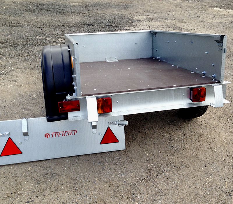 Le corps du produit est galvanisé, le corps est basculant, la planche est pliante. Le fabricant a fait un renforcement supplémentaire du côté afin qu'une personne puisse facilement charger la remorque. La conception peut supporter un poids de 540 kg. Grâce à la suspension à ressort avancée, la charge est répartie uniformément sur la coque. Sans auvent, mais il peut être installé, ce qui augmentera la capacité de la coque et empêchera la pluie, la neige, la poussière et la saleté de pénétrer dans les marchandises transportées. En raison de la résistance accrue à l'humidité du contreplaqué, le sol ne perd pas ses qualités d'origine pendant longtemps.