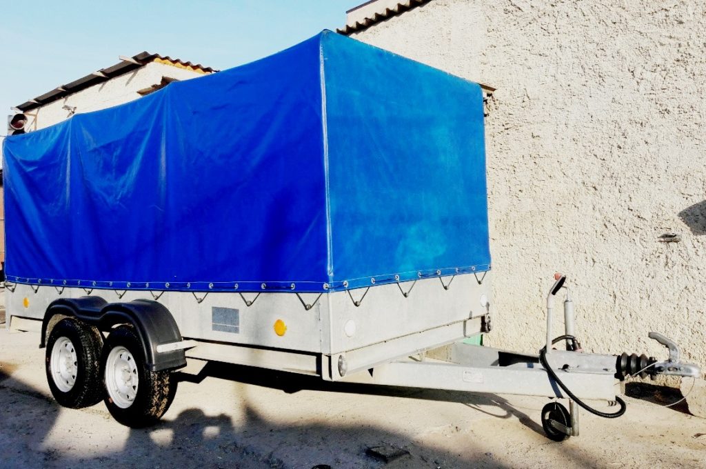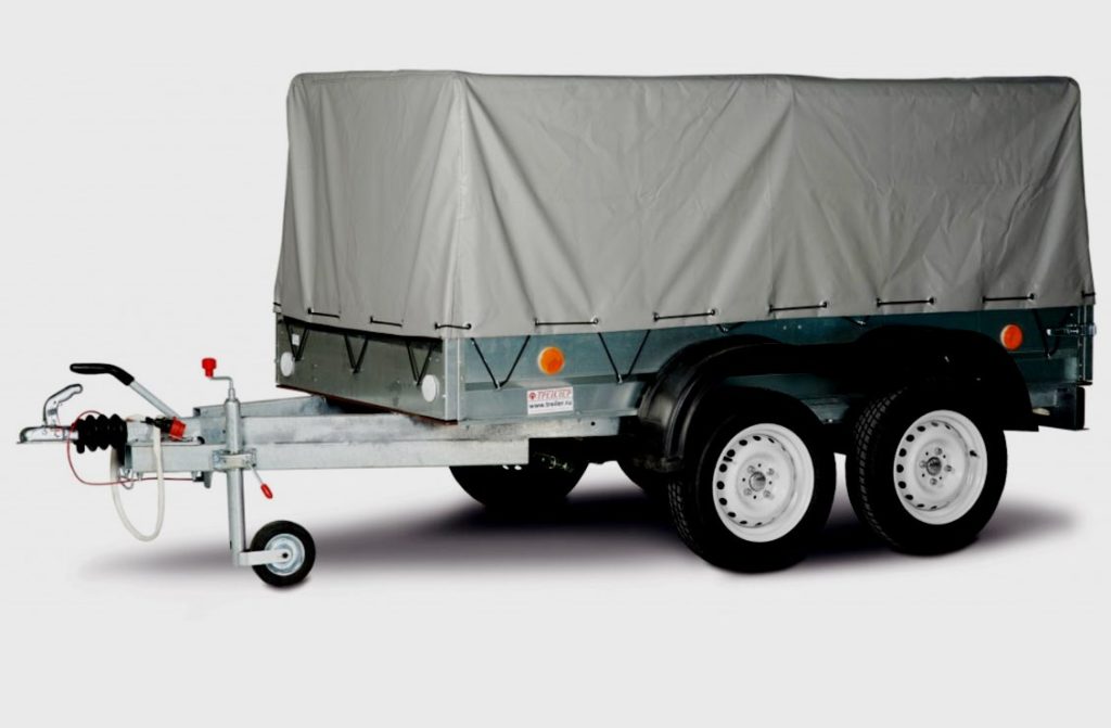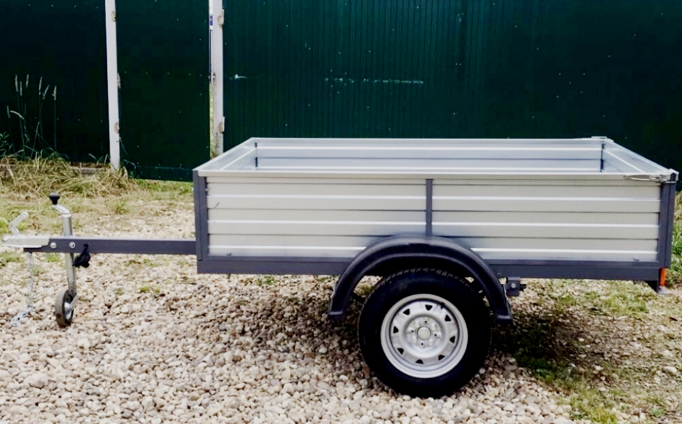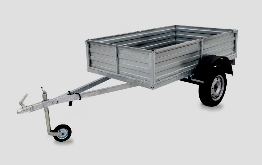 Construction de type benne à un essieu avec côtés exposés avec une peinture au zinc. Il est facile de charger et de décharger les marchandises du corps.Capable de transporter des articles ménagers, du matériel, des objets divers dont la masse totale n'excède pas 540 kg. Un autre auvent et une roue roulante peuvent être achetés moyennant des frais supplémentaires. Paramètres : 2000 x 1230 x 400 mm, diamètre de roue - 13 pouces. Les ailes sont en plastique, le sol est en contreplaqué résistant à l'humidité.