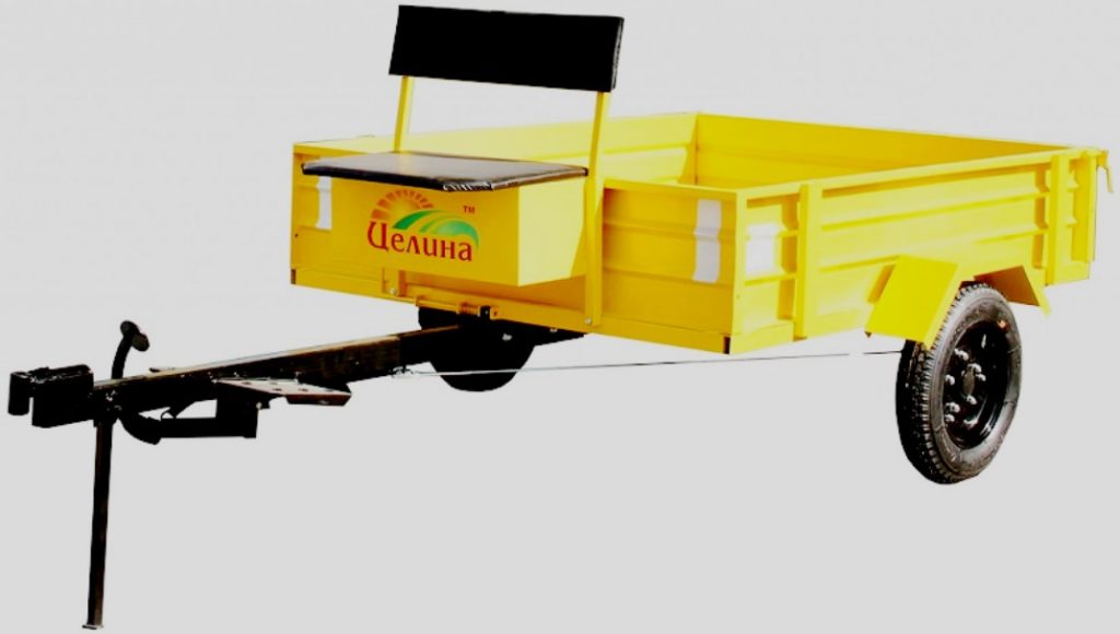 Attaché facilement et efficacement à n'importe quel tracteur à conducteur marchant. Il a un corps à bord, très apprécié des résidents d'été. Il est complété par des arcs et un auvent.Le corps est galvanisé, la suspension est à ressort. La capacité de charge maximale est de 500 kg. Du contreplaqué résistant à l'humidité a été utilisé dans la fabrication du plancher. Des planches et un cadre en métal, recouverts de galvanisation.