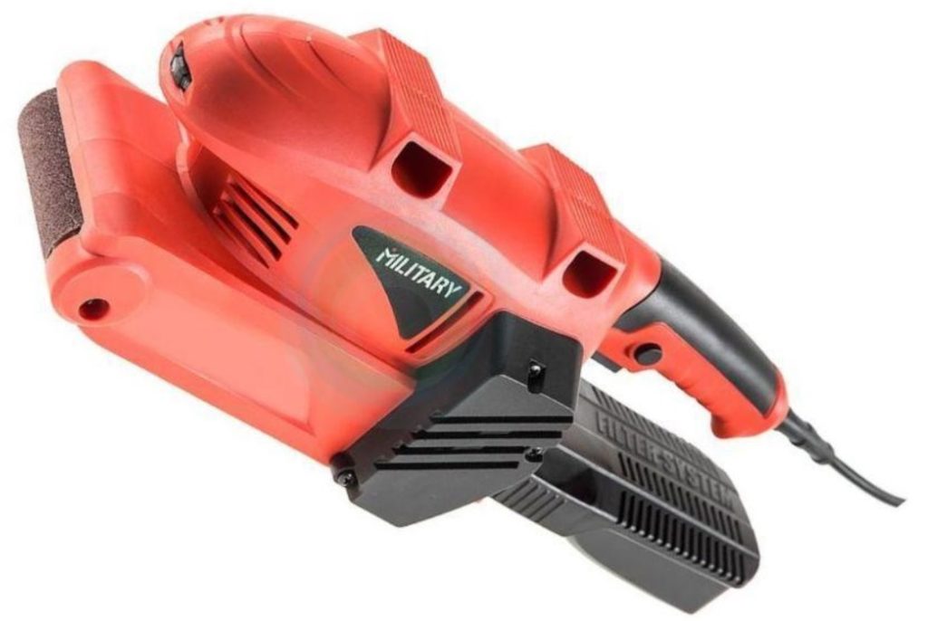 L'outil électrique est équipé d'une bande abrasive. En raison de l'interaction du ruban avec la surface, le meulage et l'élimination des défauts se produisent.