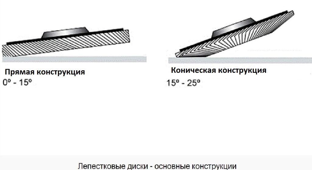 Les meules à lamelles peuvent être utilisées dans les meuleuses d'angle, c'est-à-dire qu'elles sont capables de traiter un plan situé à un angle par rapport à la surface de la pièce. La conception de l'appareil aura un impact direct sur l'efficacité du broyage. Pour ce faire, vous devez connaître deux conceptions de base, illustrées dans la figure ci-dessous :