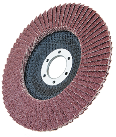 Les disques à lamelles sont constitués de lamelles abrasives à base de tissu en forme d'éventail autour d'un support central. Il est fait de fibre de verre. En raison de la disposition radiale des lamelles, une grande élasticité de la surface de travail du produit est obtenue, ce qui augmente considérablement la productivité par rapport aux autres outils. La position spéciale du matériau abrasif contribue à son refroidissement pendant le fonctionnement, assurant un meulage à froid. Le nombre maximal de tours par minute est de 13300 tr/min.
