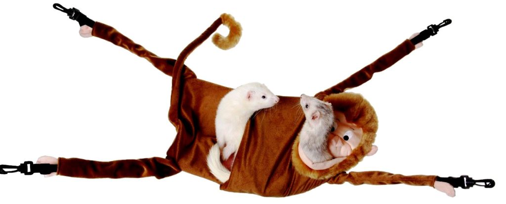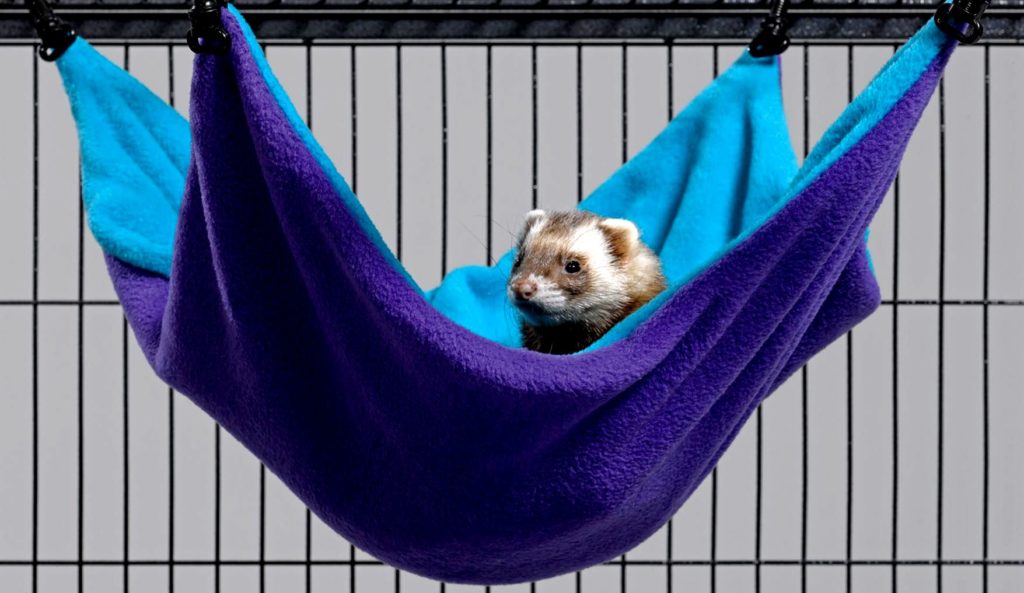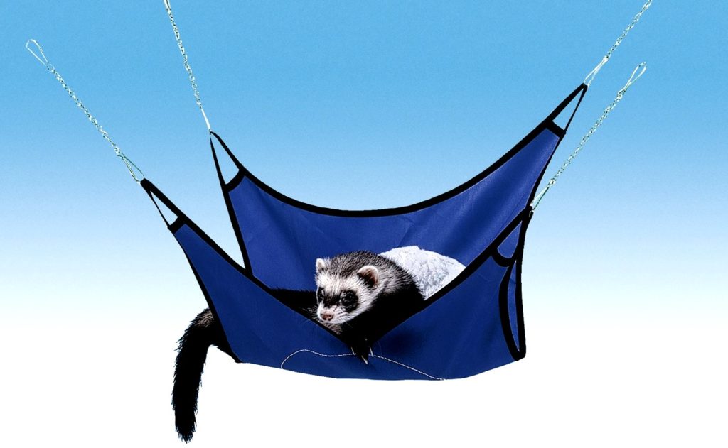 Les petits rongeurs préfèrent se reposer, s'amuser et dormir sur des dispositifs suspendus souples qui sont attachés à la maison ou à la cage avec des cordes. Vous pouvez vous y balancer comme sur une balançoire. Les maisons suspendues sont utilisées par les furets pour leur intimité, afin que les regards indiscrets ne gâchent pas leur humeur. Le hamac se compare favorablement à ses homologues en ce qu'il est suspendu dans les airs et ne prend pas d'espace libre dans la maison de l'animal.