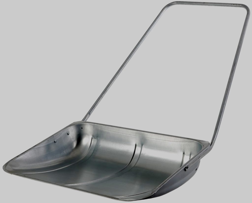 Pelle à neige, qui est essentiellement un grattoir à part entière sur roues. L'appareil est conçu pour le déplacement rapide de grandes masses de neige. Le cadre est en aluminium haute résistance.Il y a aussi deux courbures caractéristiques (sur le seau et sur la poignée), ce qui rend le modèle extrêmement facile à utiliser. Les côtés peuvent augmenter en hauteur, ce qui permet de travailler avec de très grandes congères. La pelle ne se lève pas. Avec son aide, les masses sont transportées sur n'importe quelle distance.