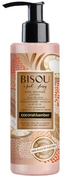 Il a une structure très délicate et légère, uniformément répartie et rapidement absorbée. Ne laisse pas de sensation collante ou grasse, ne tache pas les vêtements. Emballé dans une bouteille transparente avec un distributeur, qui évite d'appuyer et de presser accidentellement le produit, car il s'ouvre et se ferme en tournant le bec verseur vers la droite ou vers la gauche. L'huile de coco et la vitamine E entrant dans la composition adoucissent, nourrissent et hydratent intensément l'épiderme. L'huile de graines de tournesol protège contre les rayons ultraviolets et l'extrait d'ambre est un antioxydant. Le liquide a une agréable teinte rose, lorsqu'il est appliqué sur le corps, il donne de la brillance et de l'éclat, la peau brille littéralement, surtout au soleil.