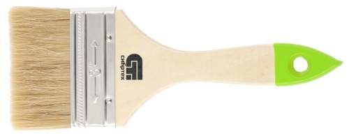Ce modèle de fabrication chinoise est conçu pour peindre les murs, plafonds et autres surfaces nécessaires avec tout type de matière colorante. Il a une forme confortable de poignée en bois, épaissie dans la zone de préhension, ce qui garantit une utilisation confortable pendant un long processus. Les poils du pinceau sont fabriqués à partir de matières premières naturelles, qui ont une douceur et une résistance suffisantes pour une application de peinture ou de vernis de haute qualité. Il est fermement attaché à la poignée avec une base de sertissage en métal avec un revêtement anti-corrosion. De plus, cette composition résiste parfaitement aux effets des composants abrasifs des colorants. Cela augmente la durée de vie de l'outil.