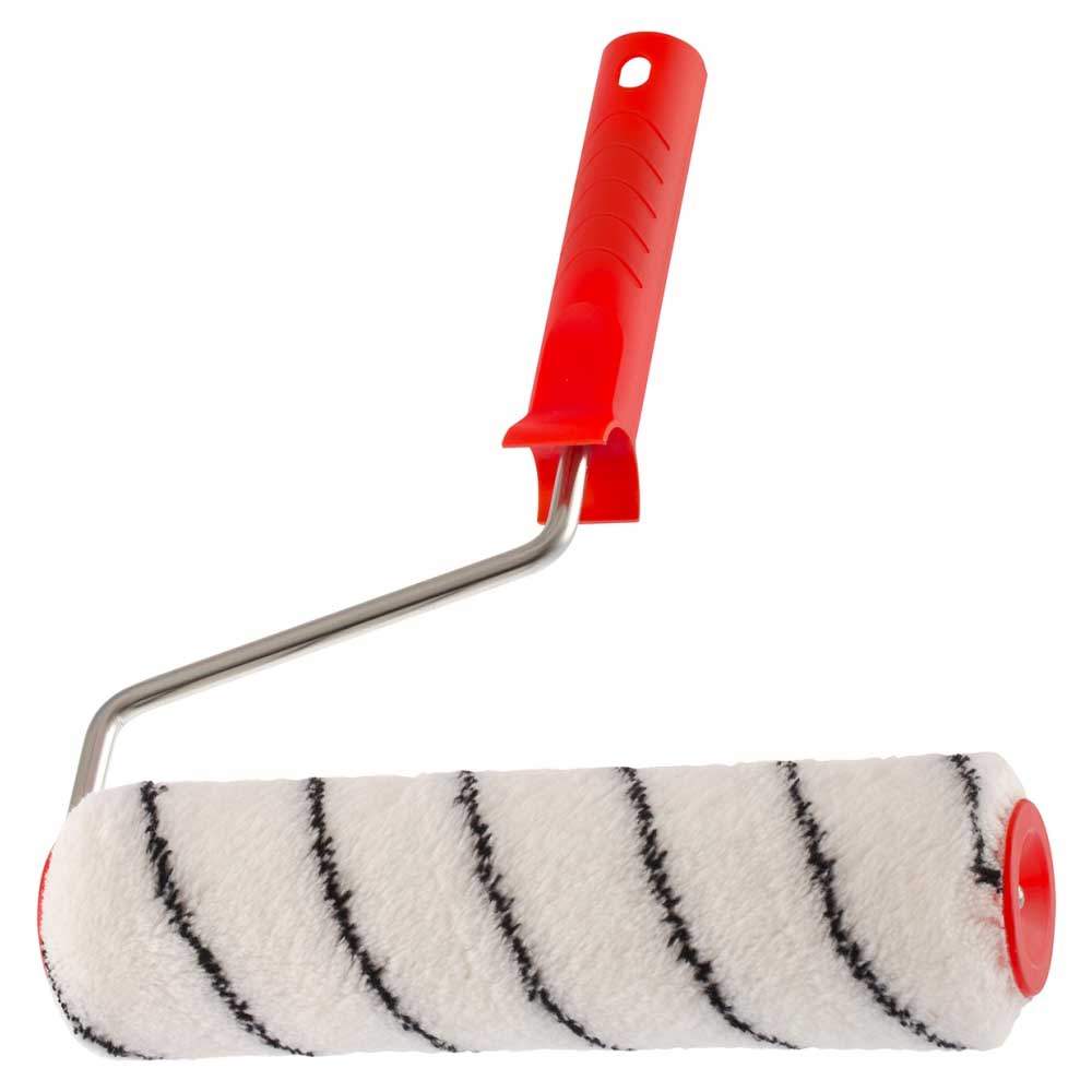 Un rouleau à peinture en microfibre avec une poignée en plastique, une aide fiable lors des réparations.
