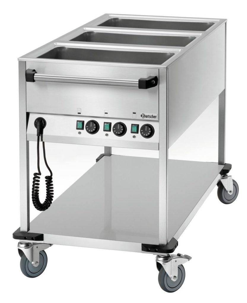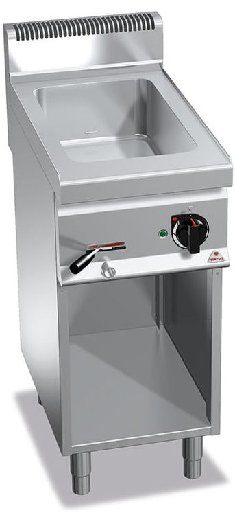 Des variantes stationnaires sont installées en restauration collective avec une fréquentation assez importante. Les appareils suffisamment grands ont plusieurs sections et modules. Le plus souvent, ils sont fabriqués avec une méthode de localisation au sol, alors qu'ils n'occupent pas de surface de travail libre. L'une des principales qualités que doit avoir un bain-marie au sol est la stabilité. Les fabricants veillent soigneusement à ce que le conteneur ne glisse pas sur le sol et ne chancelle pas.