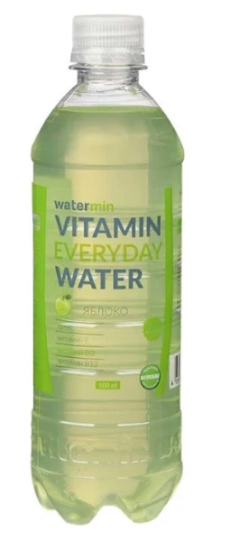 Ce produit est une eau enrichie en vitamines. Le fabricant a pris en compte tous les éléments nécessaires dont une personne a besoin pendant la journée pour une activité mentale et physique. Par conséquent, la composition contient des vitamines du groupe B, ainsi que C, D et E, ainsi que du magnésium, du calcium, du zinc et de l'iode. Cette eau a un goût de pomme et convient à un usage quotidien.