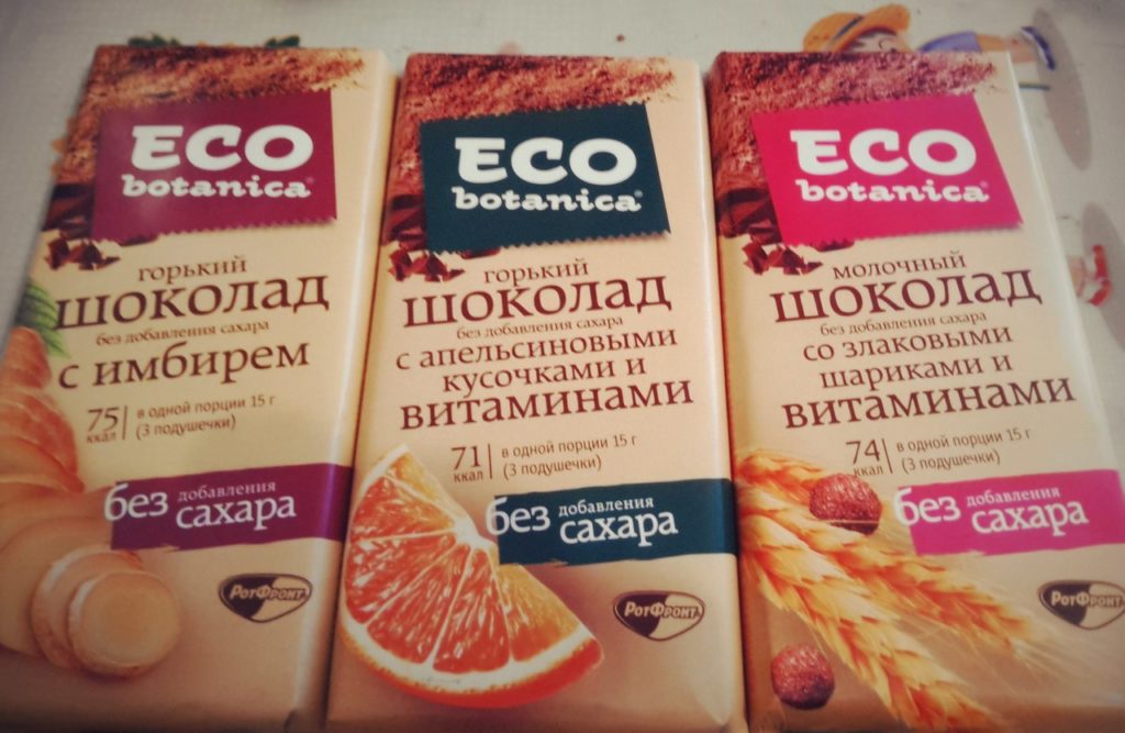 Spécialement pour les personnes qui maintiennent un mode de vie sain, mais qui ne se privent pas de joies modestes, les fabricants Rot-Front ont développé la ligne Eco-Botanica. Ce produit convient aux acheteurs qui surveillent leur santé, la série contient des extraits et des vitamines bénéfiques. Un large assortiment est dilué avec des tuiles amères, laiteuses et sombres.