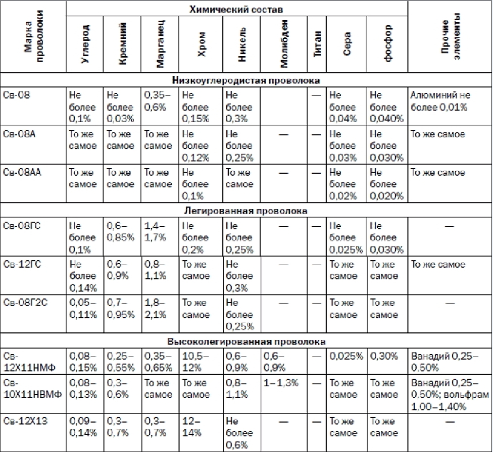 Le fil d'acier au carbone est répertorié dans l'American Society (AWS), sous la désignation "ER 70 S - x" (unités impériales), où : "E" - électrode ; "R" - charge ; 70 est la résistance à la traction minimale exprimée en milliers de livres par pouce carré (psi); "S" - dureté ; "x" est un nombre représentant une information sur la composition chimique de l'électrode ("2", "3", "4", "6" ou "7"), il correspond à une quantité variable de carbone, de manganèse et de silicium dans addition à une masse fixe de phosphore, de soufre, de nickel, de chrome, de molybdène, de cuivre et d'autres éléments. Considérez les propriétés des produits conformément au dernier chiffre: