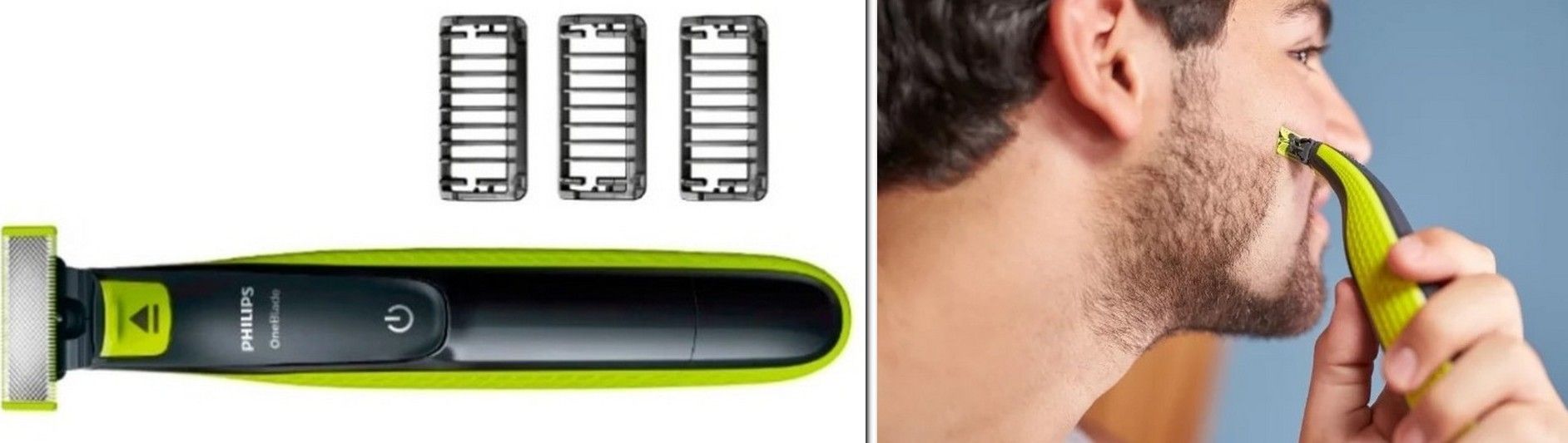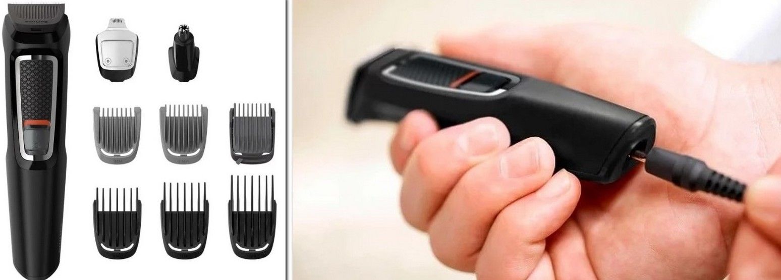 | Quelles buses y a-t-il: | peigne pour chaume, barbe, cheveux, corps; tondeuse pour les contours, coupe les poils du nez et des oreilles; tête de rasoir |