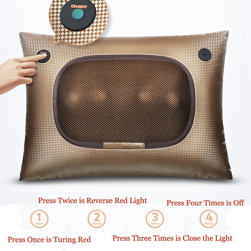 L'oreiller de massage a plusieurs fonctions, il pétrit en profondeur, soulage les tensions musculaires, grâce à la chaleur supplémentaire, il détend, apaise et améliore le sommeil.