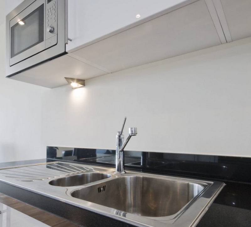 Pour ces meubles, il est préférable de sélectionner des sources lumineuses à lueur neutre, qui ne dénatureraient pas la couleur des aliments en cours de cuisson et n'irriteraient pas la vue lors de la cuisson. Les modèles avec un détecteur de mouvement ou des lampes à capteur sont mieux adaptés. Un confort particulier peut être obtenu si l'éclairage de la cuisine est allumé par du coton (ondulation de la main), c'est-à-dire sans toucher aux commandes. Une telle conception vous permettra de ne pas être distrait du travail lorsque, par exemple, vous devez vous laver rapidement les mains lors du nettoyage du poisson. Les options suivantes pour mettre en valeur l'espace à l'intérieur des armoires de cuisine et des tables de chevet sont considérées comme les plus originales et pratiques :
