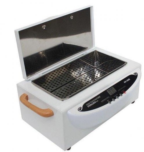 Équipement pour la stérilisation thermique du métal, du verre et d'autres produits résistants aux températures élevées. Il vous permet de définir un certain temps de fonctionnement et son mode. Ce modèle est capable de gérer un grand nombre d'outils à la fois, il convient donc aux installations médicales, aux salons et centres de beauté, à la manucure et à la pédicure.