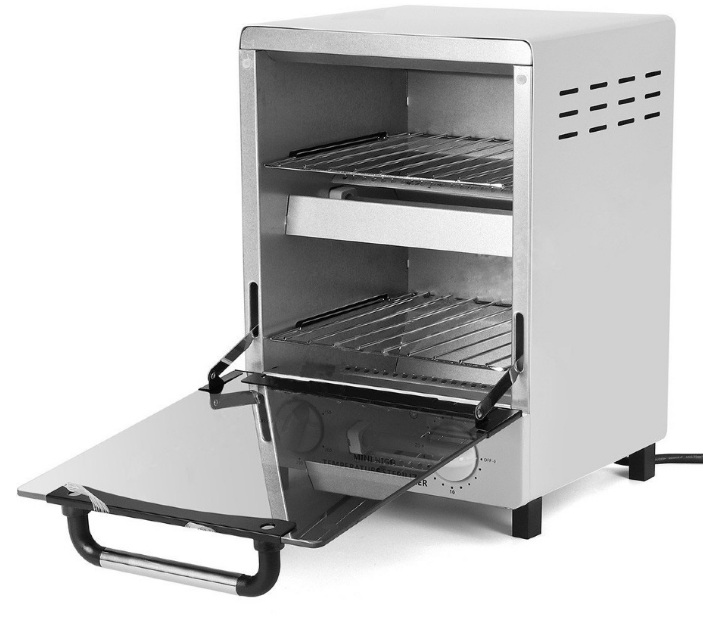 Description de l'apparence : armoire avec deux étagères, une porte en verre résistant à la chaleur qui s'ouvre de haut en bas, des pieds rectangulaires solides et deux interrupteurs manuels. Le bloc interne est en acier inoxydable. En plus de l'équipement, il y a: un conteneur amovible spécial et des anneaux pour extraire le plateau à outils.