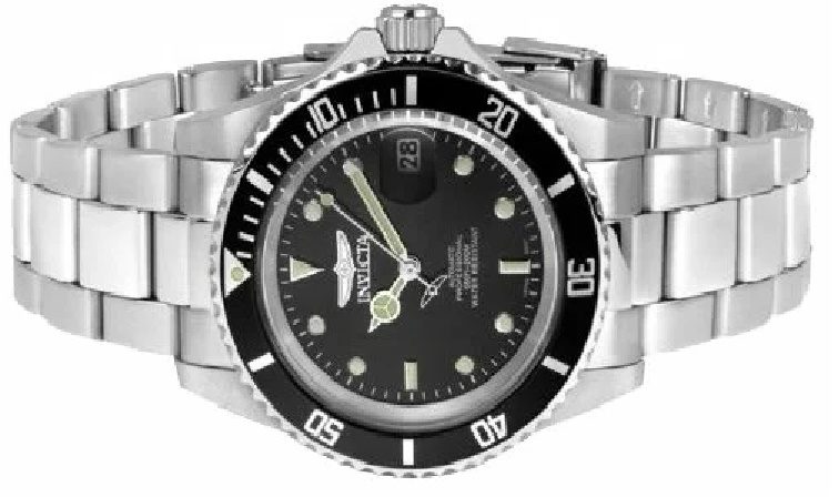 Montre homme en acier inoxydable avec verre minéral. Cadran avec aiguilles lumineuses et grands chiffres pour les minutes. Chronomètre adapté aux amateurs de plongée et de plongée sous-marine. Indice d'étanchéité WR200. Le bracelet en métal traditionnel complète la montre.