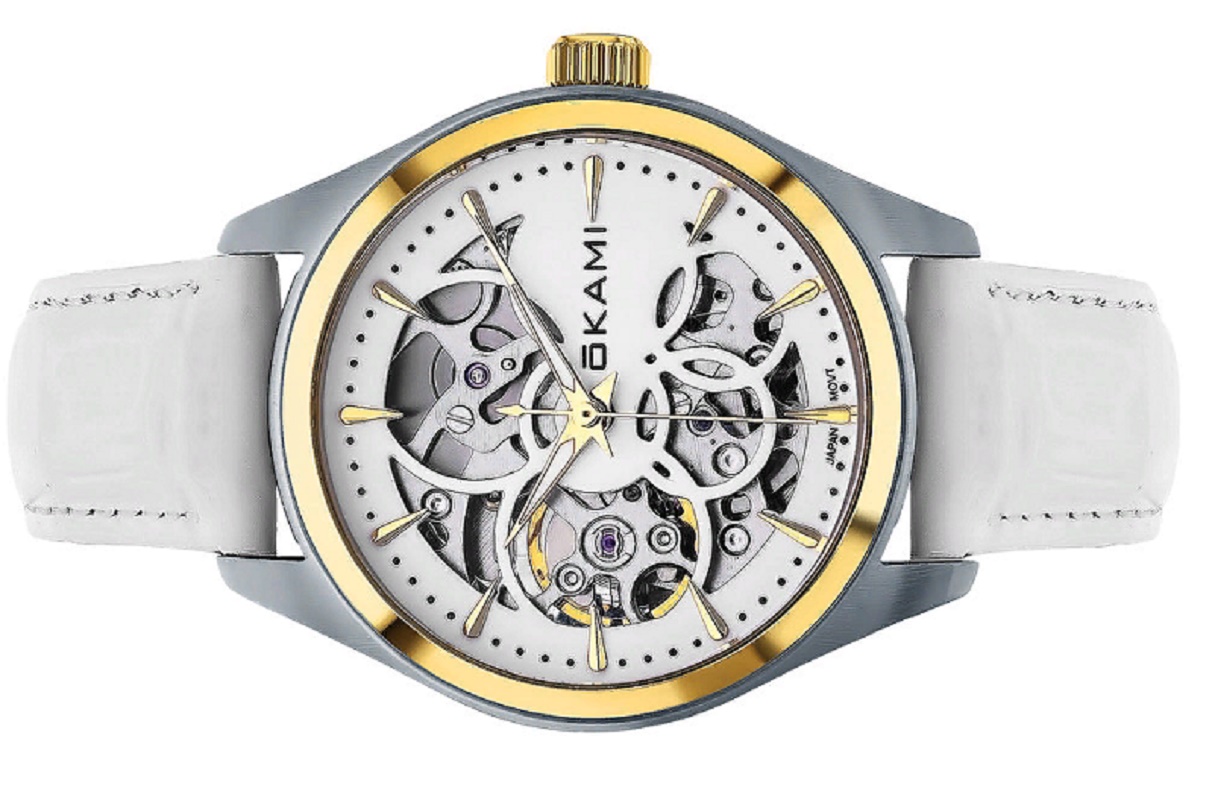 Le modèle original au format squelette convient à la garde-robe sportive et professionnelle. Un boîtier rond plaqué or, un mouvement ouvert, des aiguilles éclairées et un bracelet en cuir blanc donnent à la montre un style business. Le mécanisme est conçu pour un mode de vie actif. La classe de résistance à l'eau vous permet non seulement de faire du jogging, mais aussi de pratiquer activement des sports nautiques sans enlever vos marchettes.