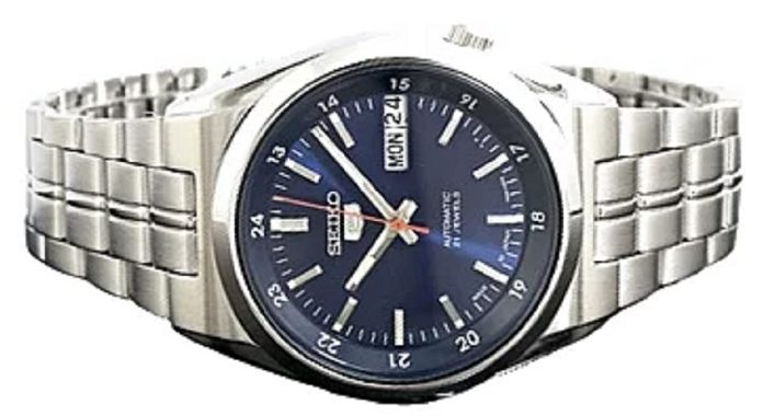 Montre homme au format classique. Mécanisme à ressort à remontage automatique sur 21 rubis. Le boîtier et le bracelet sont en acier inoxydable sans revêtement supplémentaire. Il y a un indicateur de date sur le cadran. Convient pour une utilisation par temps humide, classe de résistance à l'eau WR30.