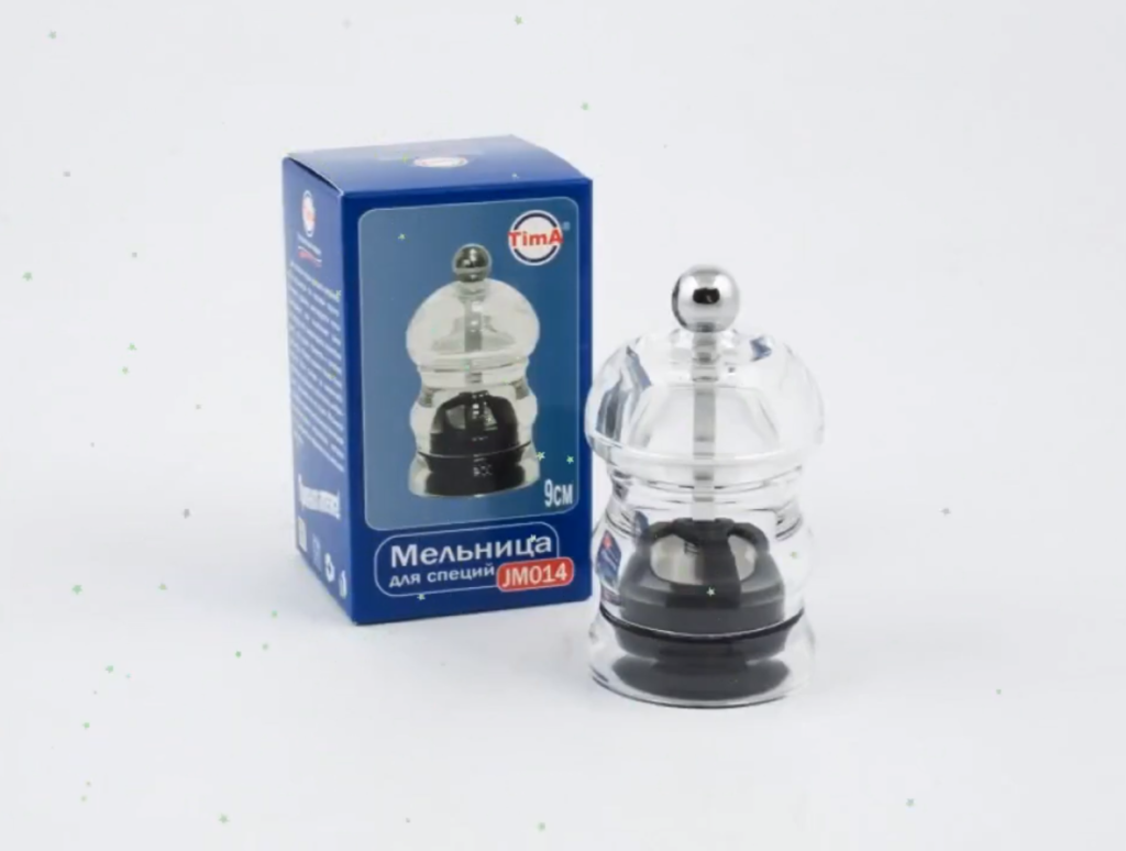 Le moulin mécanique est en acrylique. Le boîtier transparent est très élégant et permet également de contrôler facilement la quantité de contenu. Vous pouvez observer le processus du mécanisme, ce qui est absolument impossible à faire en l'absence de parois transparentes. Les meules sont en céramique, ce qui permet de broyer facilement tout type d'épices sèches. L'intensité du broyage des épices peut être contrôlée en vissant ou en desserrant la vis sur le dessus du corps. Pour moudre, tournez le haut du moulin dans le sens des aiguilles d'une montre. Le prix moyen est de 909 roubles.
