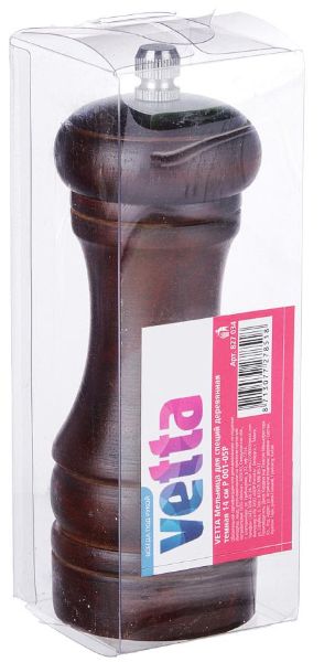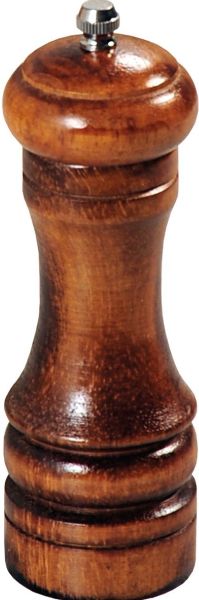 Dans la fabrication d'un moulin à main, du bois de haute qualité a été utilisé. Le mécanisme est en céramique.Le produit n'a pas peur des influences extérieures et de l'humidité, de sorte que le boîtier ne se dessèche pas et ne se fissure pas. Le produit n'absorbe pas les odeurs, vous ne pouvez donc pas avoir peur que les arômes d'épices se mélangent. La hauteur est de 16,5 cm, il est facile à utiliser, il suffit de tourner le haut du produit.