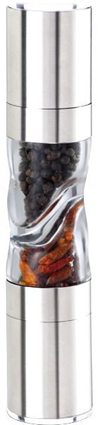 Meuleuse mécanique élégante et confortable avec un design double face. Le broyeur est équipé de meules en céramique. Le corps est en acier inoxydable. Le réservoir transparent est en verre. Il vous permet de contrôler la consommation d'assaisonnement, ce qui garantit l'utilisation la plus confortable. Le produit est compact et prend facilement n'importe quelle place dans la cuisine. Le volume du récipient est de 100 ml, la hauteur est de 23,4 cm et la largeur est de 6 cm.Vous pouvez le trouver dans les magasins au prix de 836 roubles.