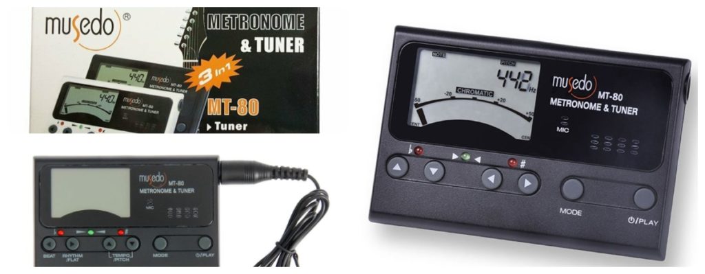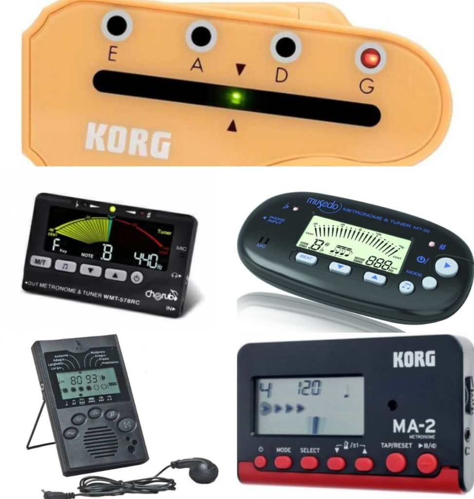 Si vous êtes débutant, il est préférable de choisir un métronome électronique en combinaison avec un accordeur. Les intervalles sont comptés par la minuterie intégrée, le haut-parleur produit des clics. La gestion s'effectue à l'aide de boutons. Il n'est pas cher. Il existe des appareils avec une entrée pour connecter un casque, afin de ne pas gêner les autres.