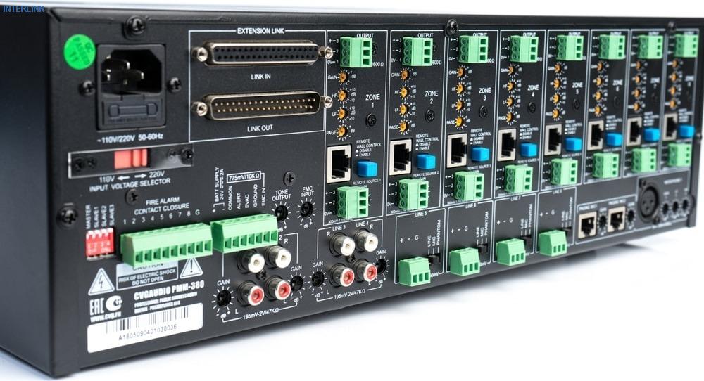 Matrice/préamplificateur audio professionnel CVGaudio MCP-8 vous permet d'organiser une diffusion de haute qualité de la musique et des annonces vocales. L'équipement dispose de 8 à 8 canaux, vous permettant d'envoyer un signal depuis n'importe quelle entrée vers n'importe quelle, plusieurs ou simultanément vers toutes les sorties. Il est possible de connecter des contrôleurs muraux externes pour chaque zone, des sources de signal locales pour n'importe quelle zone directement dans la console. De plus, la connexion en cascade de jusqu'à 4 matrices est autorisée, ce qui porte le nombre de canaux à 32, ainsi que la connexion d'un microphone de diffusion d'urgence. L'appareil peut être alimenté par une batterie de secours 24V.
