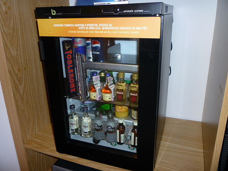 Ainsi, le mini-bar est un petit réfrigérateur qui peut être intégré au meuble. Il est apparu pour la première fois au début des années 60 du siècle dernier. Initialement, ces appareils n'étaient utilisés que dans les hôtels. Le client pouvait y trouver plusieurs variétés d'alcools forts, de vins, de bières, de verres et de petites collations. De plus, des hôtels chers pour les clients réguliers remplissaient le bar à leur demande. Le coût de la nourriture et des boissons dans le mini-bar dépasse largement le coût de produits similaires pouvant être achetés au bar du même hôtel. Plus tard, des systèmes automatisés spéciaux ont été développés qui ont commencé à garder une trace de ce qui se trouve dans le réfrigérateur. Le client dispose d'un certain temps pour examiner le produit et, en cas d'inutilité, le remettre à sa place. Habituellement, ce temps ne dépasse pas une minute. De plus, pour plus de commodité pour les clients, ces produits ont dans la plupart des cas une porte transparente. Le volume des minibars est généralement d'environ 20 à 90 litres. Certains modèles peuvent avoir un petit congélateur.