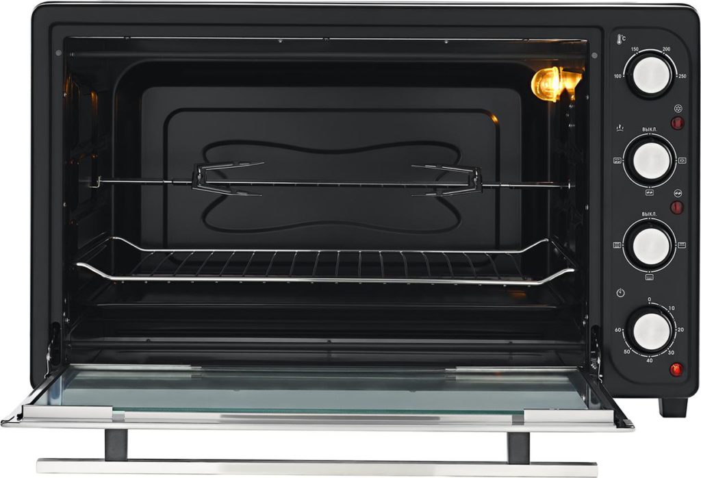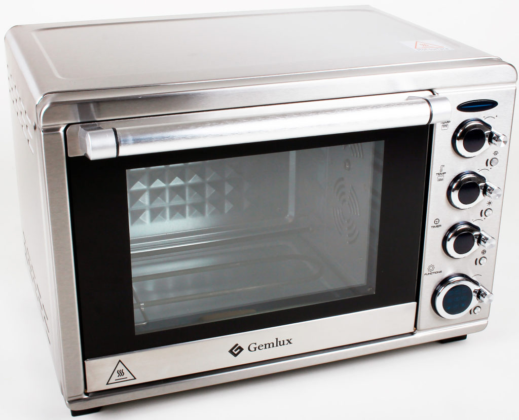 Le modèle a une puissance nominale élevée (1 800 W), ce qui permet de chauffer le four en peu de temps et de bien réchauffer le produit.La température est réglable de 30 à 230 degrés. De plus, Gemlux GL-OR-1538LUX est équipé d'une minuterie (120 min) avec arrêt automatique, équipé d'une grille, d'une plaque à pâtisserie, d'une brochette et d'une poignée spéciale. Le coût moyen est de 13 320 roubles.