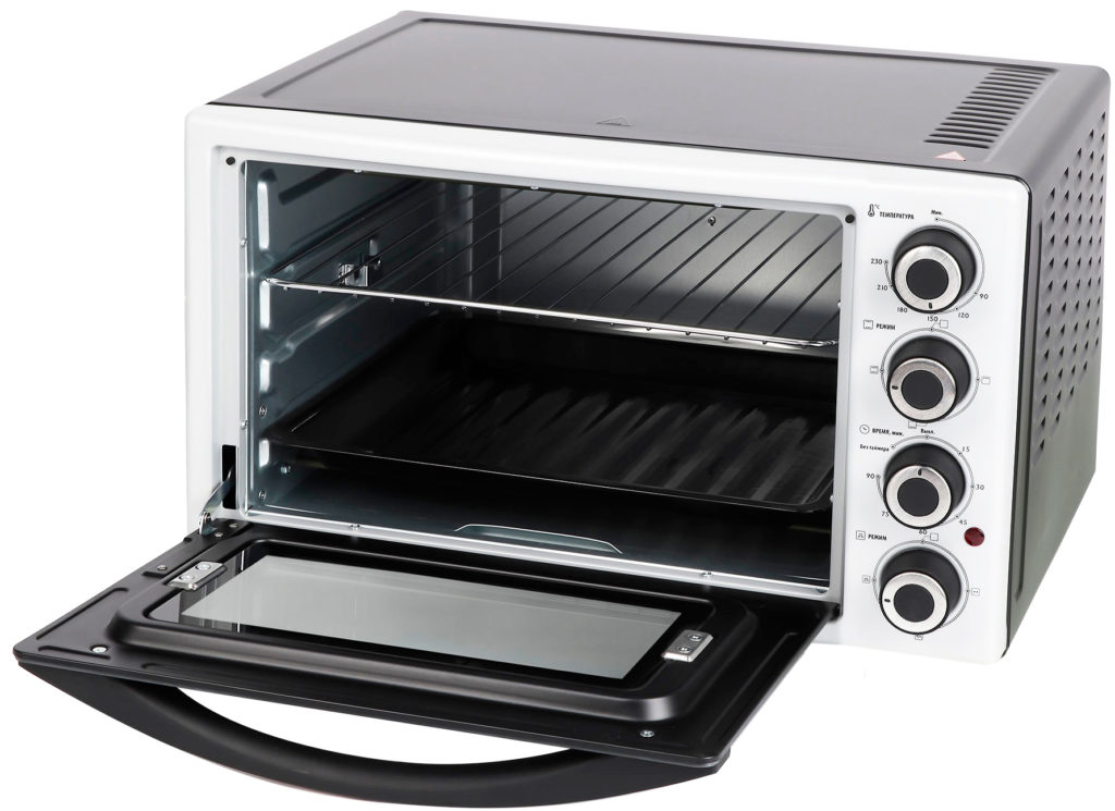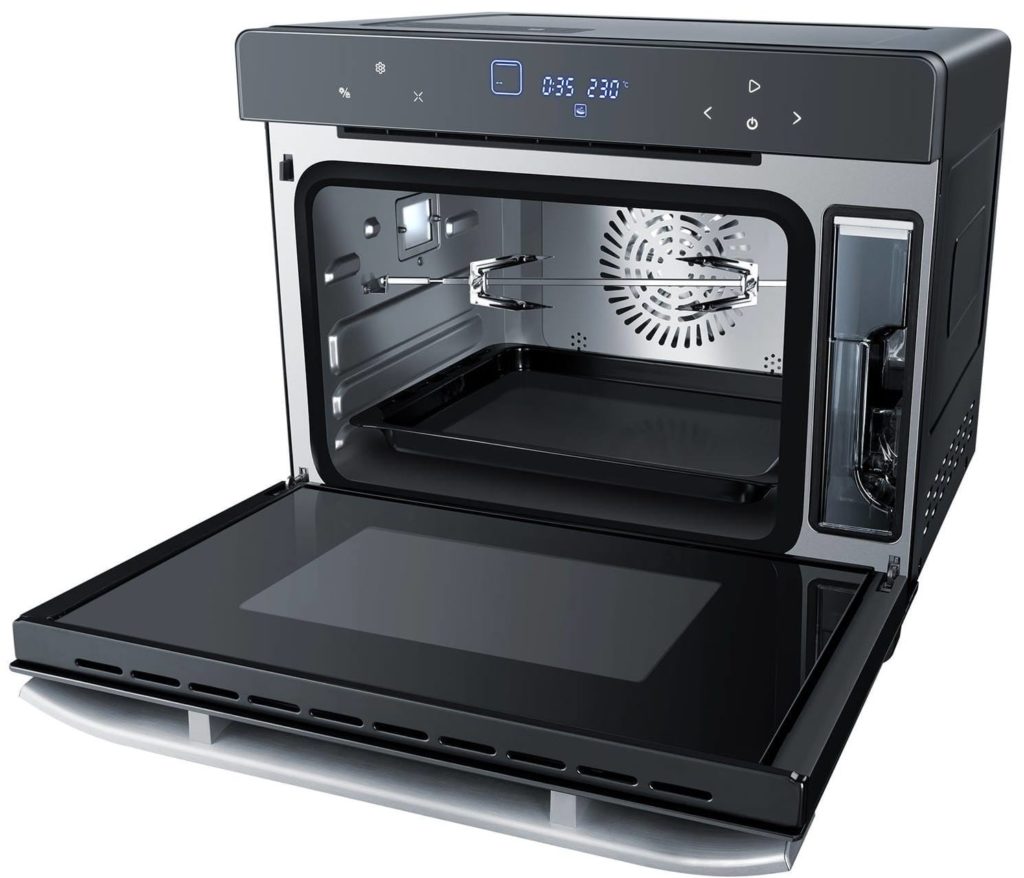 Le modèle de bureau est capable de remplacer en grande partie un four à part entière, avec une puissance et une capacité de chambre élevées. Le volume du four est de 45 litres, ce qui est optimal pour cuire de grandes portions. Commande tactile, le corps de l'appareil est équipé d'un écran LED. La fonctionnalité comprend :