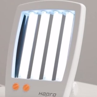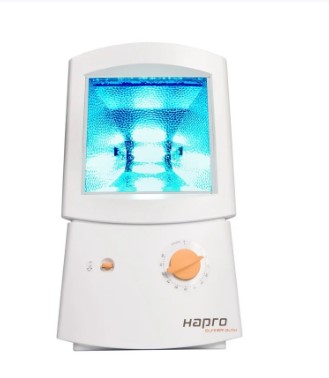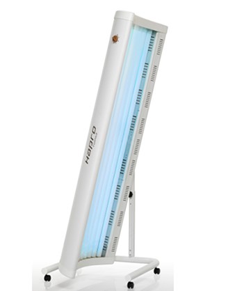 Un autre appareil de Hapro dans le classement est un modèle unilatéral pour un usage domestique dans n'importe quelle position pour tout le corps. Une fois plié, il ne prend pas plus de place qu'une planche à repasser. Le panneau de l'appareil est monté sur un trépied en métal, change facilement l'angle d'inclinaison de la verticale à l'horizontale à la demande du propriétaire, peut s'élever de la surface du sol de 86 à 114 cm, revient rapidement à sa position d'origine, sans prendre beaucoup d'espace pendant le stockage. Le support sur roulettes permet un transport pratique à l'intérieur. Equipé de 10 lampes de 100 W pour le corps et une pour le visage, d'une puissance de 400 W. Cela vous permet d'obtenir un teint noble et uniforme du visage et de tout le corps en quelques séances seulement. Une minuterie électronique de 30 minutes, un système de mémoire de session pour 4 personnes, une fonction d'arrêt automatique rendent l'utilisation de l'appareil simple et confortable. Garantie un an.