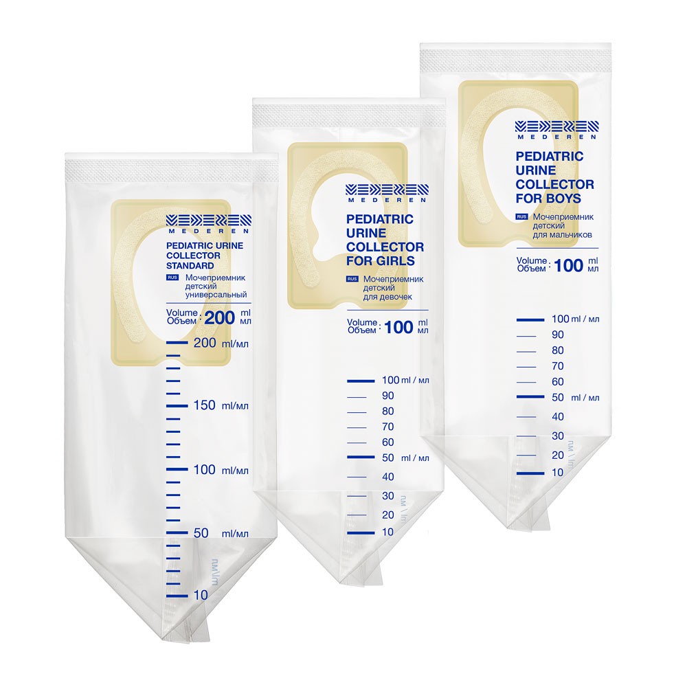 Pour la fabrication de sacs pour modèles pour enfants, le polyéthylène est utilisé. Le sac est solidement attaché à la peau de l'enfant avec du velcro. Toute l'urine est collectée dans un sac, qui a un balisage spécial indiquant la quantité de matière collectée. Les options standard pour les appareils pour enfants peuvent collecter 100 millilitres d'urine.