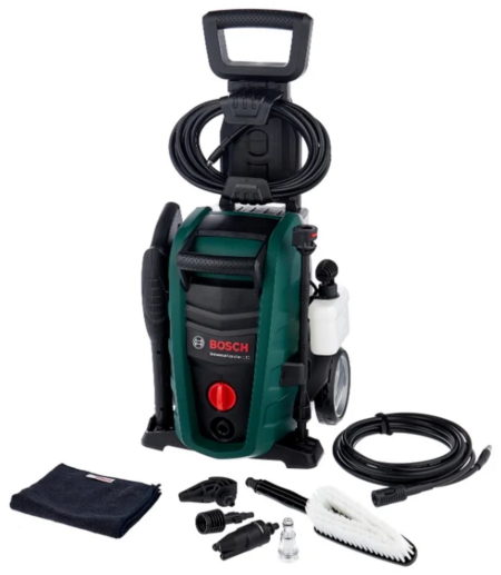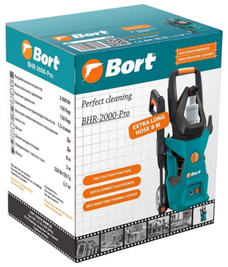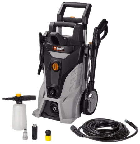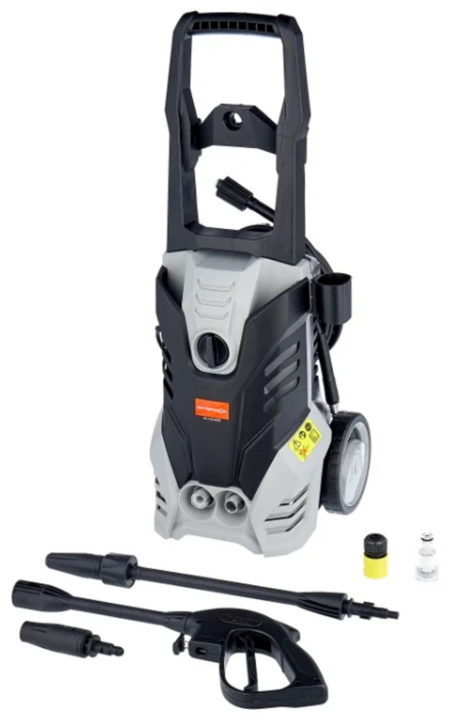 Produit pour le lavage des véhicules, camionnettes, bateaux, ainsi que le nettoyage des revêtements routiers, allées, produits en bois. La durée de vie est augmentée grâce à l'utilisation d'une buse en aluminium. La sécurité électrique est assurée par une double isolation des éléments conducteurs de courant par rapport au corps.