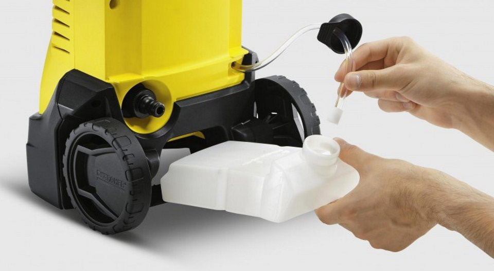 Produit puissant pour un nettoyage facile des allées, des façades de piscine, des tapis et du lavage des véhicules. La longueur du tuyau de pression, 8 mètres, permet de laver facilement la voiture sans déplacer la machine. La buse souhaitée est rapidement fixée à l'aide de la fonction QuickFix.