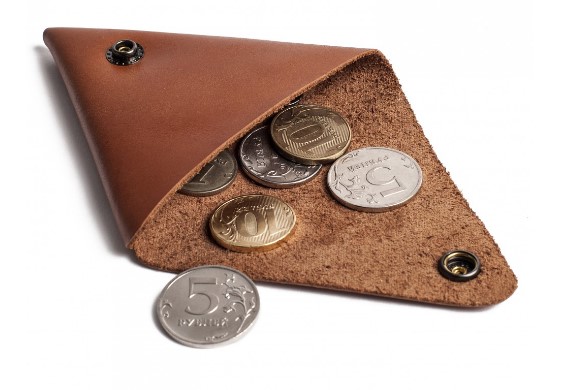 Le modèle pour hommes en cuir de forme triangulaire est non seulement pratique à utiliser, vous permettant de ranger de l'argent en métal, des écouteurs, des cartes mémoire et d'autres petits objets, mais reflète également le statut élevé et le goût impeccable de son propriétaire. Fabriqué à la main à partir de cuir de veau souple parfaitement habillé, se ferme avec un bouton. Peut être ouvert des deux côtés. Il a l'air riche et à la mode à un prix relativement bas de 590 roubles.