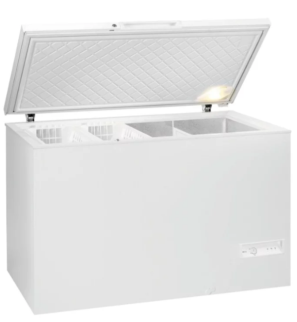 Le coffre du fabricant slovène se distingue par sa puissance et son volume. Avec un volume total de 400 litres, le volume utile est de 380 litres et la capacité de congélation journalière atteint 26 kg. Sans alimentation, le congélateur peut tenir jusqu'à 38 heures et maintenir parfaitement la température interne hors ligne. Pour faciliter l'utilisation, il y a de petites divisions à l'intérieur pour trier les produits, ainsi qu'une section suspendue en forme de panier. Parmi les fonctions supplémentaires, la super-congélation est disponible, une indication lumineuse lorsque la porte est ouverte. Le modèle se caractérise par un fonctionnement presque silencieux du compresseur (43 dB).