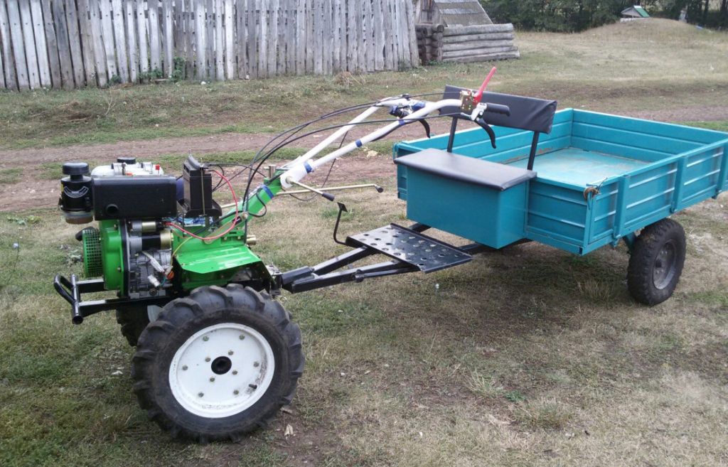 Le tracteur à conducteur marchant est capable de transporter des charges qui dépassent son propre poids deux fois. La puissance et la masse du moteur sont suffisantes pour une tâche aussi difficile. Il est souvent utilisé comme mini tracteur, car il est capable de faire son travail, mais coûte un ordre de grandeur inférieur. La remorque est vendue séparément dans le magasin, mais certains artisans fabriquent les leurs à partir de moyens improvisés. Il est très populaire auprès des résidents d'été et des propriétaires de fermes de taille moyenne en raison de sa polyvalence.