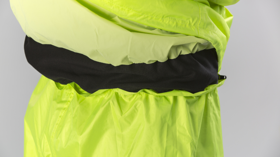 La structure en velcro et le cordon de serrage à la taille permettent d'ajuster l'imperméable le plus précisément possible à la silhouette et garantissent une protection absolue contre le vent et la pluie.