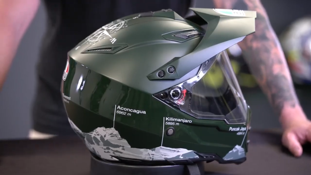 La notation se poursuit avec un modèle intéressant, réalisé comme un hybride entre un casque intégral standard et un casque cross. L'unité combine avec succès les fonctionnalités des deux appareils.