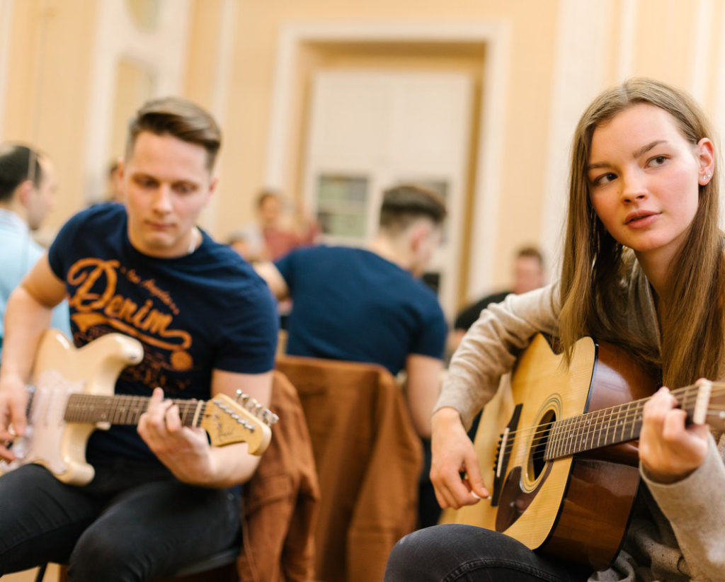 Des professeurs expérimentés aideront à développer l'ouïe et le sens du rythme, à régler la respiration, et enseigneront également l'improvisation et la capacité de se comporter sur scène.