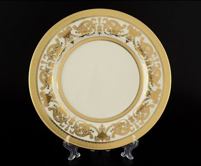Ce modèle d'ensemble est également un représentant de la société précédente. Il est déclaré en quantité de 6 pièces, d'un diamètre de 150 mm. Un tel ensemble décorera n'importe quelle fête et ajoutera de la solennité même à la consommation quotidienne de thé. La forme classique des appareils, décorée d'ornements dorés ornés, donne grandeur et grandeur aux produits. "Constanza Crem Imperial Gold" est une excellente option cadeau pour toute occasion.