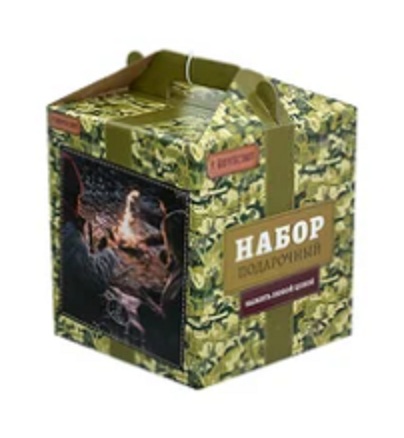 - emballage compact dans un étui à crayons de couleur camouflage avec trois compartiments ;