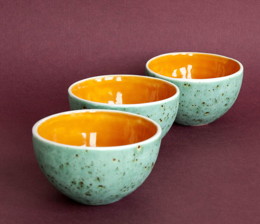 Les bols faits à la main mesurent environ 5 cm de haut et 13 cm de diamètre. Ils contiennent 250 ml de liquide.