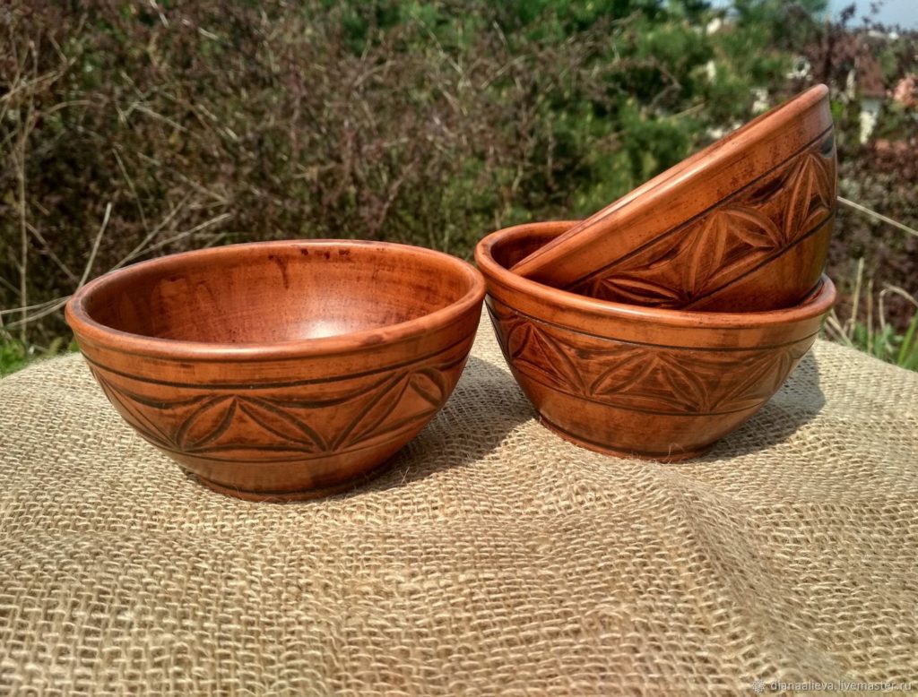 Le revêtement avec glaçure rend la surface durable, augmente considérablement la durée de vie de la vaisselle. Un récipient d'un diamètre de 11 cm est pratique à tenir traditionnellement à deux mains et en même temps le fond rétréci vous permet de saisir le bol avec vos doigts par le bas.