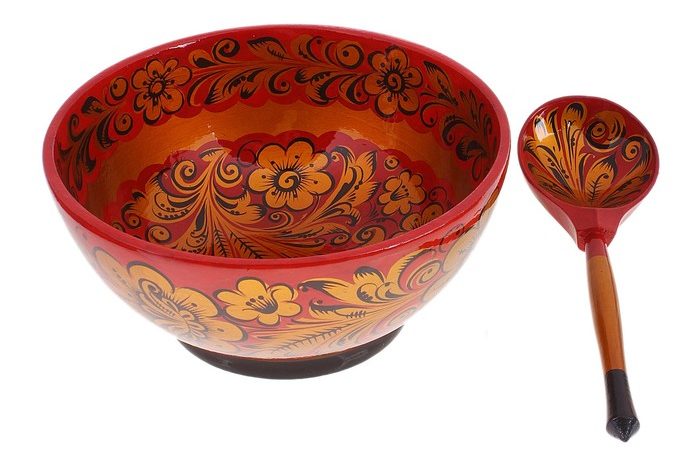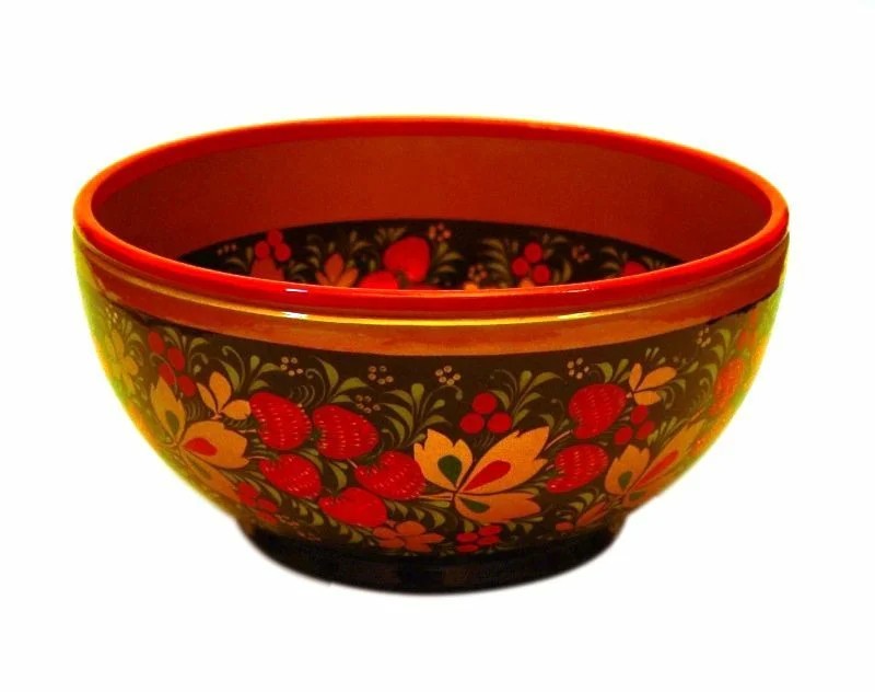 Les bols correspondent parfaitement à leur nom - Khokhloma en bois. Ils sont sculptés et peints à la main, chacun d'eux est unique. Des plats aux couleurs vives décoreront n'importe quelle cuisine et un déjeuner quotidien se transformera en vacances. Recouvert d'un vernis transparent résistant, le bol ne craint pas l'eau, les liquides acides et alcalins. Vous pouvez y verser des salades, des plats avec des accompagnements.