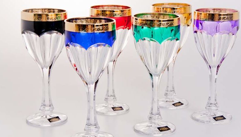 Un ensemble de verres à vin est produit par la célèbre marque tchèque et est considéré comme une excellente solution à la fois pour un cadeau et pour décorer la table. Le verre de Bohême est utilisé pour la production. Les récipients peuvent contenir jusqu'à 50 ml chacun et sont conçus pour boire des boissons alcoolisées fortes. Les produits ont une jambe haute forte et les bords décorés de jantes multicolores sont spécialement soumis à une cuisson supplémentaire, ce qui les rend plus solides. La forme des jambes tient confortablement dans la main, ce qui la rend confortable à utiliser.