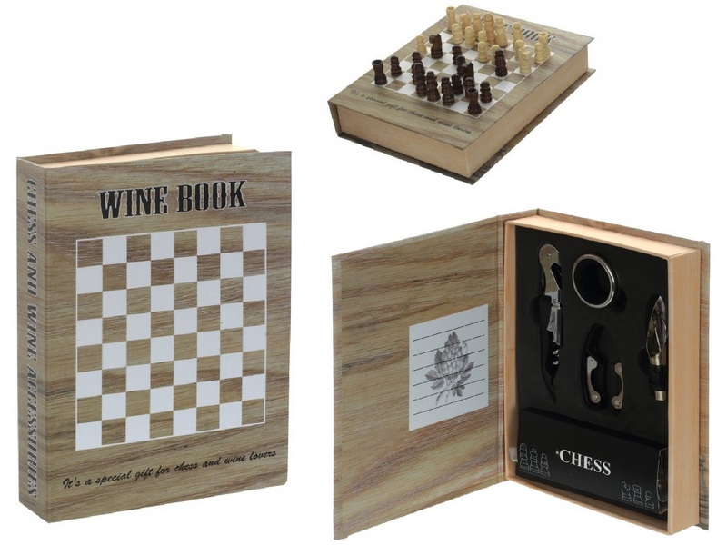 Remeco Collection présente une présentation originale d'un ensemble exquis de sommeliers, les jeux d'échecs offrent la possibilité de diversifier votre temps libre avec une bouteille de vin cher. Il y a un échiquier sur la boîte. Poids : 300 grammes. Garantie constructeur : 1 an. Dimensions : 16*4*21 cm Couleur du corps : beige. Prix moyen : 1046 roubles.