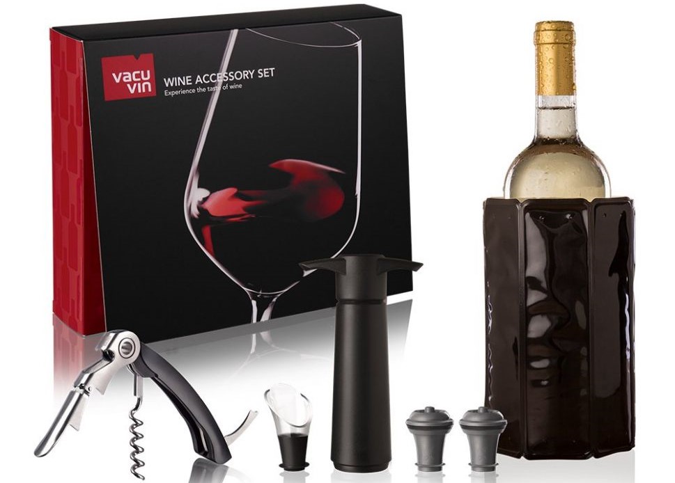 Un coffret cadeau d'accessoires pour le vin séduira non seulement les professionnels, mais aussi les amateurs de beaux vins. Les pièces scellées permettent le stockage à long terme d'une bouteille de vin ouverte. Le tire-bouchon électrique convient à tout type de bouchon. L'utilisation d'articles fera de l'ouverture et du service du vin un processus facile et agréable. Coût moyen : 6366 roubles.