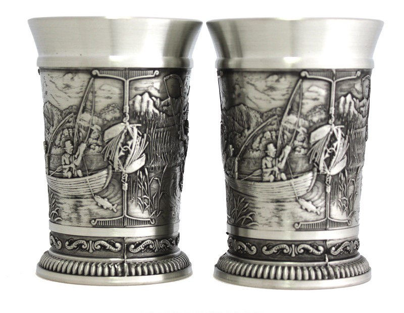 Le modèle est idéal pour la chasse ou la pêche. Les produits en acier sont fabriqués et dureront longtemps sans perdre leur apparence pour plus de commodité, un insert en cuir est prévu sur les piles, de sorte que la vaisselle ne glisse pas même si vous la prenez avec les mains mouillées.